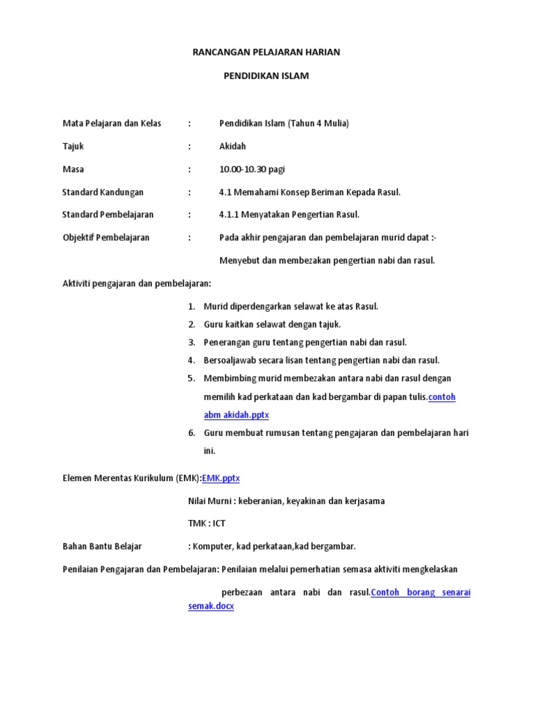 . Rancangan Pengajaran Harian ini dibina sebagai panduan kepada para guru untuk mengajar. Murid mencatat hasil perbincangan oleh guru pada. Up to 24 cash back Rancangan Pengajaran Harian Pendidikan Islam Tahun 3 1.